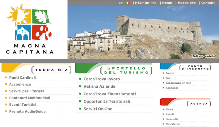 Così dice, citando testualmente, il sito di Magna Capitana (www.magnacapitana.it), un portale che con un sistema innovativo intende sviluppare l’identità culturale del Polo Territoriale dell’Area di Capitanata, aiutando il turista a conoscere le nostre bellezze e i cittadini a consultare la Vetrina delle aziende per acquisire in modo veloce e semplice tutte quelle informazioni per l’apertura di aziende al servizio del settore turistico o di quei settori decretati dalle Amministrazioni Comunali locali come essenziali per lo sviluppo dei loro Comuni. Il progetto però è molto più ampio del semplice portale (collegato tra l’altro al sito regionale che opera nello stesso settore – www.viaggiareinpuglia.it); infatti, prevede: