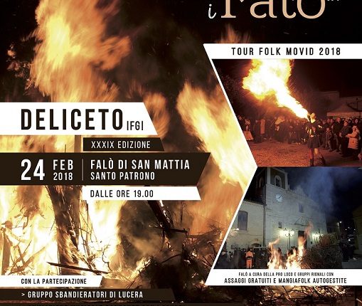 Giunge quest’anno alla XXXIX edizione la manifestazione dei Falò, dedicata al primo Patrono di Deliceto, S. Mattia Apostolo, evento che affonda le sue radici in arcaici riti del passato.