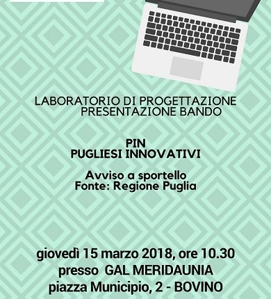 PIN PUGLIESI INNOVATIVI Notizie dalla provincia By redazione On 14, Mar 2018 752 Share 752 Share FacebookTwitterGoogle+WhatsAppE-mailPrint