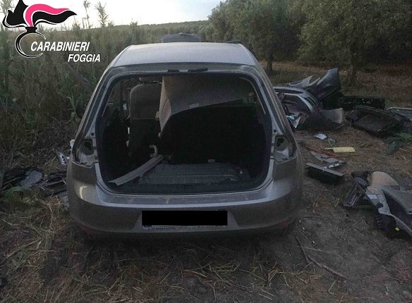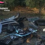 Ad operazione conclusa, tornati sul luogo dell’avvistamento, i sospetti degli uomini dell’Arma hanno trovato conferma. Tra la vegetazione i Carabinieri hanno infatti rinvenuto le carcasse di due autovetture, risultate poi provento di furto, una VW Golf intestata ad una società di leasing, e una Opel Corsa asportata a Martina Franca (TA) in quella stessa mattinata, oltre a tutta l’attrezzatura per lo smontaggio delle stesse auto e un apparecchio “jammer”, utile per inibire i sistemi di radiolocalizzazione.