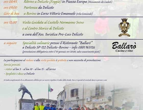 Ore 09:00 Partenza allenamento: corsa non competitiva a passo libero e passeggiata ludico-motoria a Deliceto in Piazza Europa