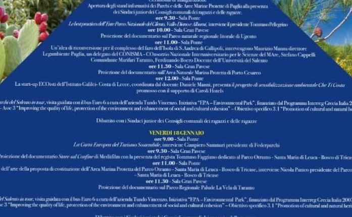 Aforis è presente alla Festa dei Parchi e delle Aree Marine Protette che si terrà dal 17 al 19 gennaio presso il Bellavista Club – Caroli Hotels di Gallipoli. La partecipazione alla conferenza di sabato 19 di Gian Maria Gasperi, presidente del Club EMAS Puglia, oltre che direttore generale dell’ente di formazione foggiano , sta a testimoniare il valore riconosciuto dell’impegno decennale da parte di AFORIS nel campo della promozione dei territori, oltre che delle imprese, attraverso la certificazione ambientale, e rappresenta anche il primo atto di un rilancio dell’attività della Scuola EMAS Ecolabel di Puglia. A breve infatti partiranno i corsi per formare consulenti e revisori EMAS ed Ecolabel che si terranno a Bari e Foggia, in partenariato con ARPA Puglia, il Politecnico di Bari e le Università di Bari e Foggia, gli ordini professionali, mentre prosegue l’attività di consulenza da parte di AFORIS per la certificazione ambientale delle aziende turistiche.