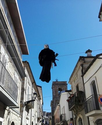 Solitamente penzolava da un filo teso tra due balconi, nelle strade del centro storico; nella mano si inseriva una patata nella quale si infilzavano 7 vistose penne: sei nere, tante quante sono le domeniche di penitenza, e una sola penna bianca.