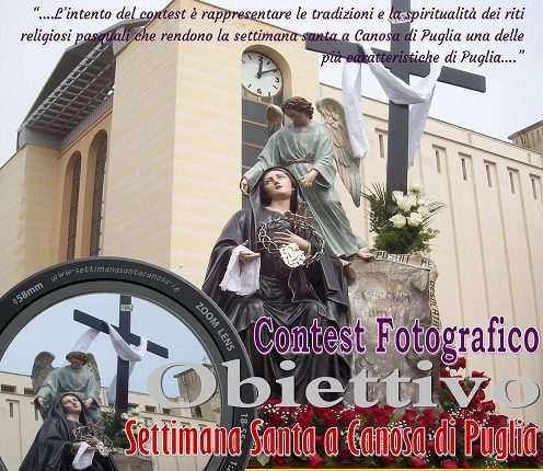 Obiettivo Settimana Santa a Canosa di Puglia, aspettando il Contest Fotografico dedicato hai Riti della Settimana Santa, che viene organizzato dall’Associazione Culturale Settimana Santa Canosa, un concorso fotografico che sarà effettuato nel contesto del social network Facebook, per la promozione di tanti talenti nel campo della fotografia mettendo a confronto le immagini scattate dai partecipanti durante i riti della Settimana Santa come le processioni dei Misteri del Venerdì Santo o quella più attesa come la processione della Desolata del Sabato.
