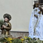 Quest’anno il tempo è stato decisamente inclemente, con temperature basse e vento freddo, ma quando si pensa ai pellegrinaggi della nostra infanzia si va con il pensiero alle belle giornate primaverili: il lento incedere della processione nella giornata soleggiata, spazzata da un venticello fresco, odore di ginestre e rose selvatiche, il canto e le preghiere intrecciati al chiacchiericcio allegro della folla in processione. La piccola chiesetta dell’Olmitello e poi la Santa Messa al convento della Consolazione, per poi tornare lentamente verso il paese.
