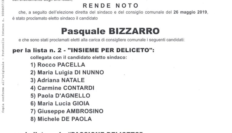 NUOVO CONSIGLIO COMUNALE DI DELICETO :: NOTIZIE prolocodeliceto.itIn Primo Piano By redazione On 31, Mag 2019 1.153 Share 1.153 Share FacebookTwitterGoogle+WhatsAppE-mailPrint