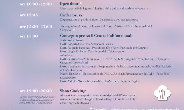Alla scoperta dei sapori e delle ricette tipiche dell’area marino costiera e lagunare. Gargano Food Village “A tavola con l’olio extra-vergine biologico”.