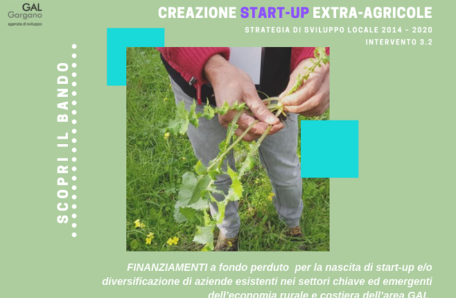 L’avviso pubblico per la presentazione delle domande di sostegno per l’intervento 3.2 – Creazione di start up extra-agricole, è stato pubblicato dal BURP della Regione Puglia. Il bando è la documentazione necessaria, si possono scaricare e consultare sul nostro sito internet. Con questo intervento si mira ad incentivare gli investimenti per attività di diversificazione aziendale ed economica necessaria per la crescita, l’occupazione e lo sviluppo sostenibile del Gargano