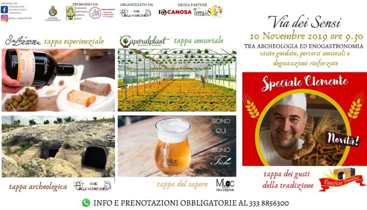 La “Via dei Sensi”, ideata dalla Fondazione archeologica canosina e dalla Tango Renato-servizi per l’archeologia e il turismo, con il patrocinio del Comune di Canosa di Puglia prosegue con la sua seconda edizione il 10 novembre p.v.