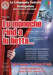 Appuntamento dunque a Sant’Agata di Puglia, giovedì 26 dicembre 2019 alle 20.30, presso il Teatro Comunale con “Lu moneche rinde a lu liette” per una nuova esilarante avventura tutta da vivere!