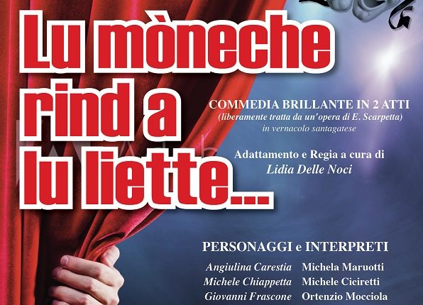 Torna in scena La Compagnia Teatrale Santagatese che si presenta al suo pubblico con una esilarante commedia “Lu mòneche rinde a lu liette” in dialetto santagatese, firmata e diretta da Lidia Delle Noci. L’opera, liberamente tratta da una delle più belle “piece” scarpettiane è tutta ambientata a Sant’Agata negli anni ’50, di cui rispecchia volti, gente e situazioni reali dell’epoca. Protagonista della storia è una coppia di coniugi Giovanni Frascone e Filomena Piritiello, sposati da poco, interpretati da Ortenzio Mocciola e Maria De Leo che, a seguito di continui litigi, decide di separarsi. Nella vicenda vengono coinvolti anche i loro camerieri, Michele Chiappetta e Angiulina Carestia, interpretati da Michele Ciciretti e Michela Maruotti, e soprattutto il malcapitato Gaetano Papocchia, Gerardo Lionetti, uomo ambiguo, dal carattere singolare. Tra situazioni esilaranti e il divertente incalzare della trama, si crea un vortice inarrestabile, che catalizzerà il pubblico in una spirale di trovate e perfetti incroci tra i personaggi fino all’epilogo, in un crescendo di travolgente comicità.