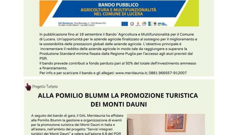 NEWS GAL MERIDAUNIA :: NOTIZIE prolocodeliceto.itIn Primo PianoNotizie dai Monti Dauni By redazione On 16, Lug 2020 649 Share 649 Share FacebookTwitterGoogle+WhatsAppE-mailPrint