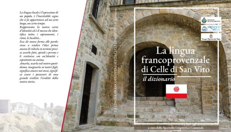 Si terrà giovedì 5 agosto, alle ore 17,30 presso la Piazzetta Comunale di Celle di San Vito, la presentazione del volume “La lingua francoprovenzale di Celle di San Vito – il dizionario” a cura dello Sportello Linguistico Comunale. Saranno presenti alla manifestazione il sindaco del comune, Palma Maria Giannini, il responsabile della Delegazione Unpli Pro Loco Monti Dauni, Gerardo Lionetti, il Presidente regionale Unpli Puglia Rocco Lauciello, ci sarà, inoltre, un rappresentante dello Sportello Linguistico Comunale di Celle di San Vito che ha curato la pubblicazione.