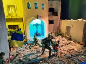 Il Presidente Savino Freda, ha ritenuto doveroso realizzare ed esporre nella mostra, un diorama particolare, avendo come tematica la sofferenza e la crocifissione del popolo ucraino, succube di un assurda guerra da parte della Russia.